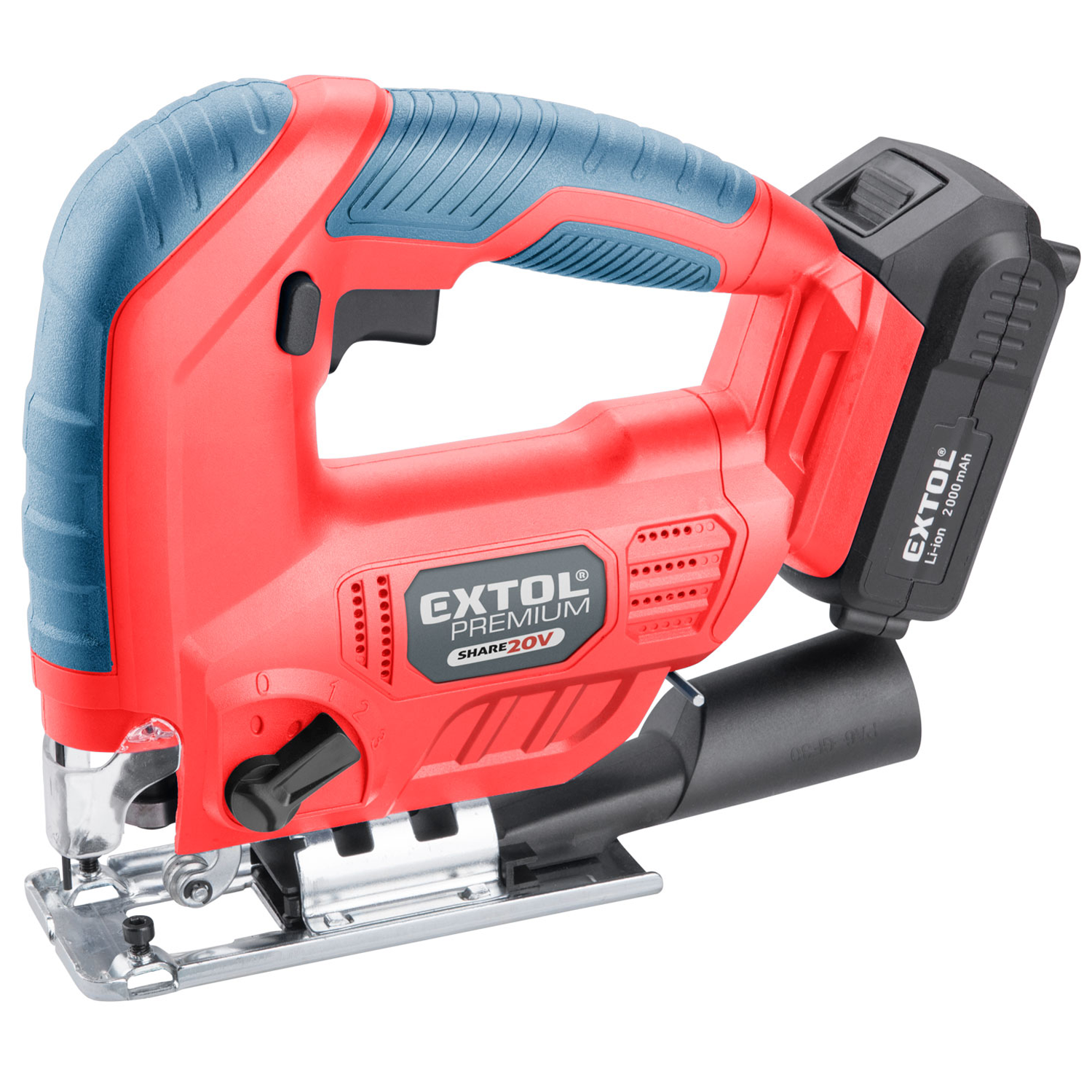 Az Extol® Premium SHARE 20 V szúrófűrésszel, megfelelő fűrészlapok használatával, tömörfa léceket és deszkákat, faforgács és farost lemezeket, műanyagot, kemény gumit, kerámiát vagy fém lemezeket, továbbá elszívóhoz (műhelyporszívóhoz) csatlakoztatva gipszkarton, cement-faforgács stb. lemezeket lehet darabolni és fűrészelni, egyenes vagy ívelt vonalban. Az előtolás beállításával optimálisan lehet beállítani a fűrészelés sebességét. A „Bosch” rendszerű gyorsbefogónak köszönhetően, szerszám nélkül lehet a különböző gyártóktól származó „Bosch” típusú fűrészlapokat behelyezni és cserélni a készülékben. Az állítható előtolási fokozatok (0+3) biztosítják az anyagnak megfelelő optimális fűrészelést.